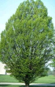 The Fastigata is popular deciduous ornamental tree with an upright growth habit. It has green leaves that turn brilliant shades of yellow and gold in autumn.