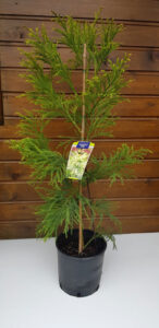 A medium sized, upright evergreen conifer tree. Unusual creamy, sulphur yellow foliage in summer, with bronze coloured hue in the winter to its needles.