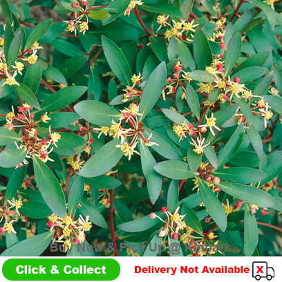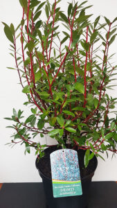 Also known as mountain pepper, this evergreen shrub is known for its cinnamon scented leathery leaves and rediish stem.