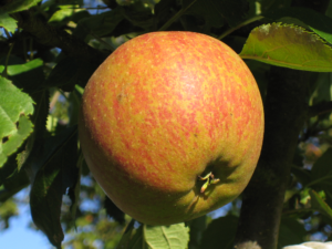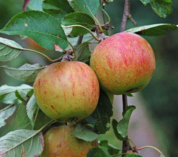 Fruit is medium-size with an orange/red flush and red stripes over greenish-yellow, with a rich flavour.