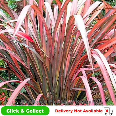 New Zealand Flax; Evergreen shrub with long arching sword shaped leaves. The coloured leaves range in colours from reds, pinks and purple tones.