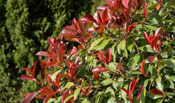Description: Evergreen plant known for its eye catching colourful young foliage. During spring and early summer, it’s new growth appears a flush red. Glossy dark green leaves all year with tinges of red.
